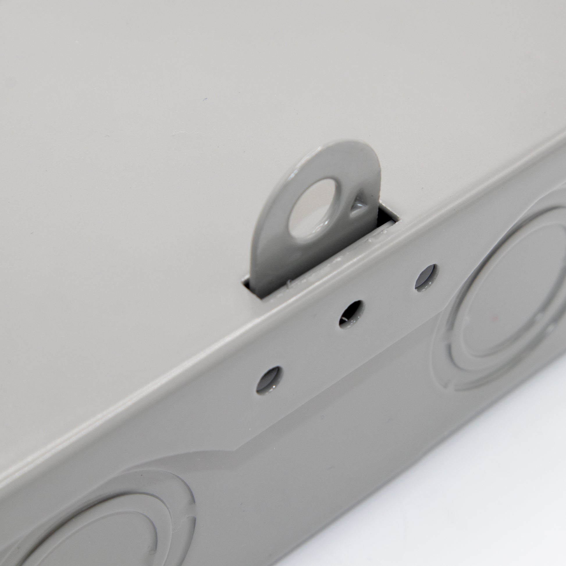 A robust 60-amp non-fused disconnect box engineered for reliable electrical disconnection in outdoor and demanding environments. Built with heavy-gauge steel construction and a NEMA 3R enclosure, it delivers rainproof protection and durability. The full dead front design ensures safety, while multiple knockout options (1/2", 3/4", and 1") at rear, bottom, and side positions provide flexible installation configurations. Generous wiring space accommodates straightforward connections, and the folding pivot locking tab secures the enclosure. Ideal for applications requiring quick, code-compliant disconnection without fusing mechanisms.